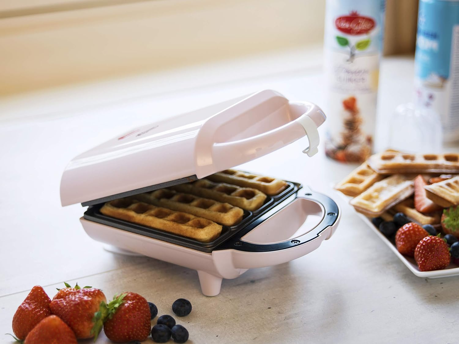 Aparatul de vafe Bestron Sweet Dreams este conceput pentru coacerea rapidă a 4 bețișoare de vafe, direct la masă. Este potrivit pentru momente petrecute în familie și pentru prepararea deserturilor proaspete, fără efort.