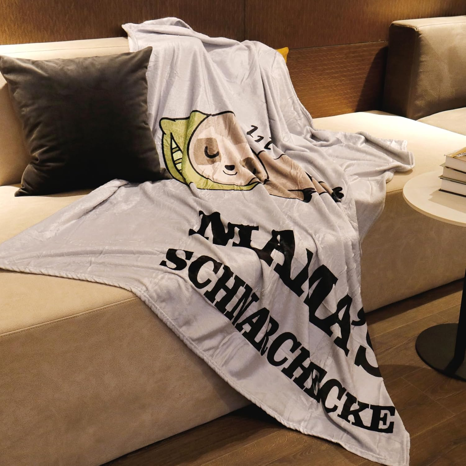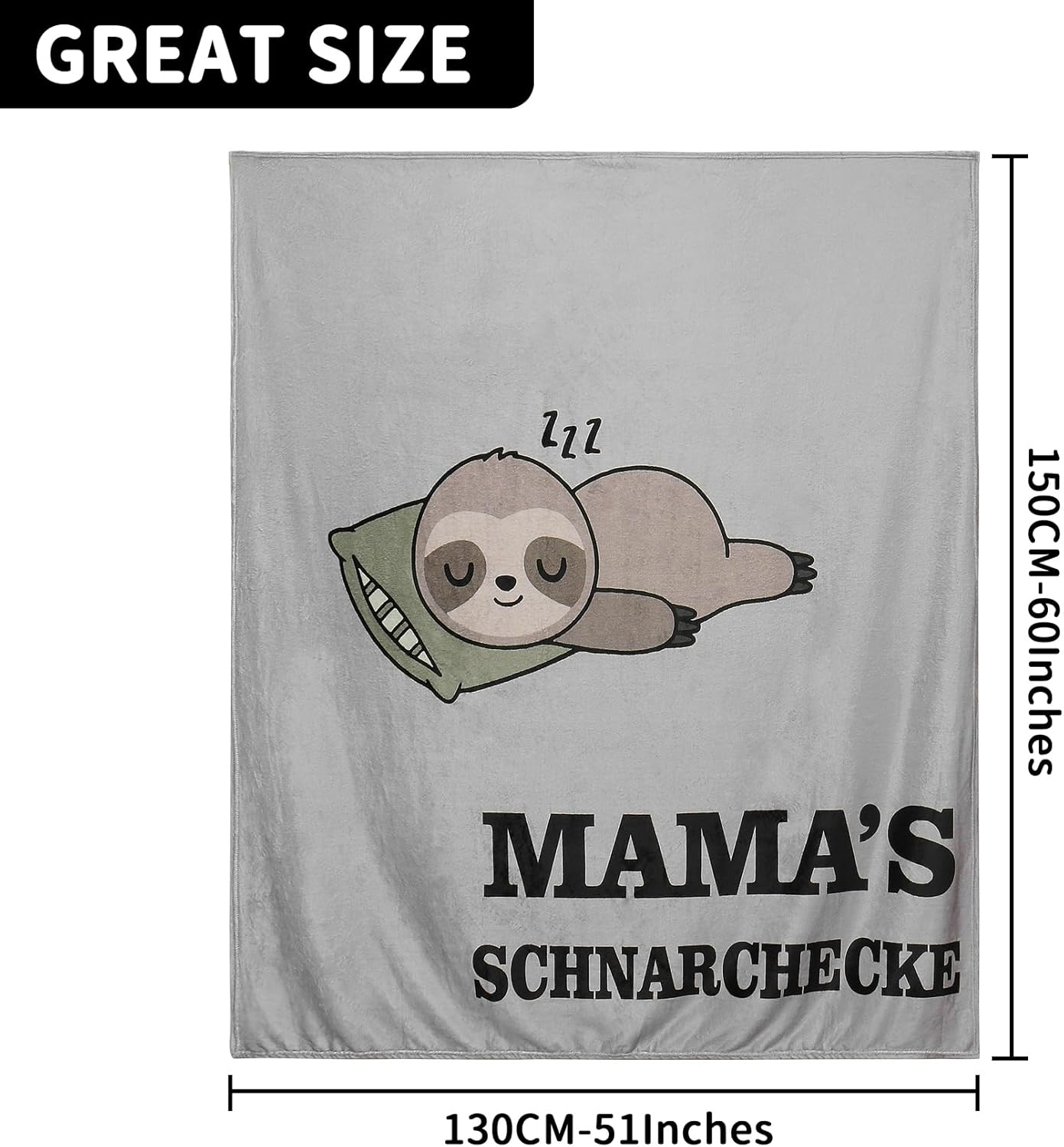Pătură cadou pentru mamă, ultra-moale, cu mesajul amuzant „Mama's Schnarcheck”. Dimensiune 130x150 cm, realizată din flanelă și microfleece premium. Ideală pentru Ziua Mamei, Crăciun sau aniversări.