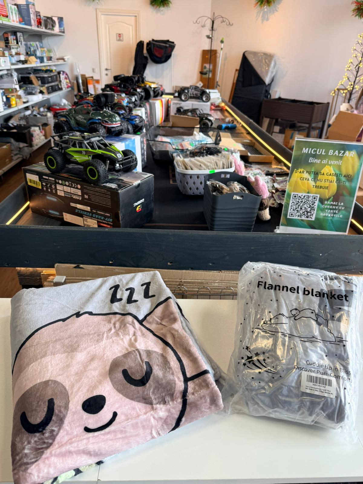 Material: Poliester premium 100% (Flanel & Microfleece), vopsele ecologice rezistente la spălare.