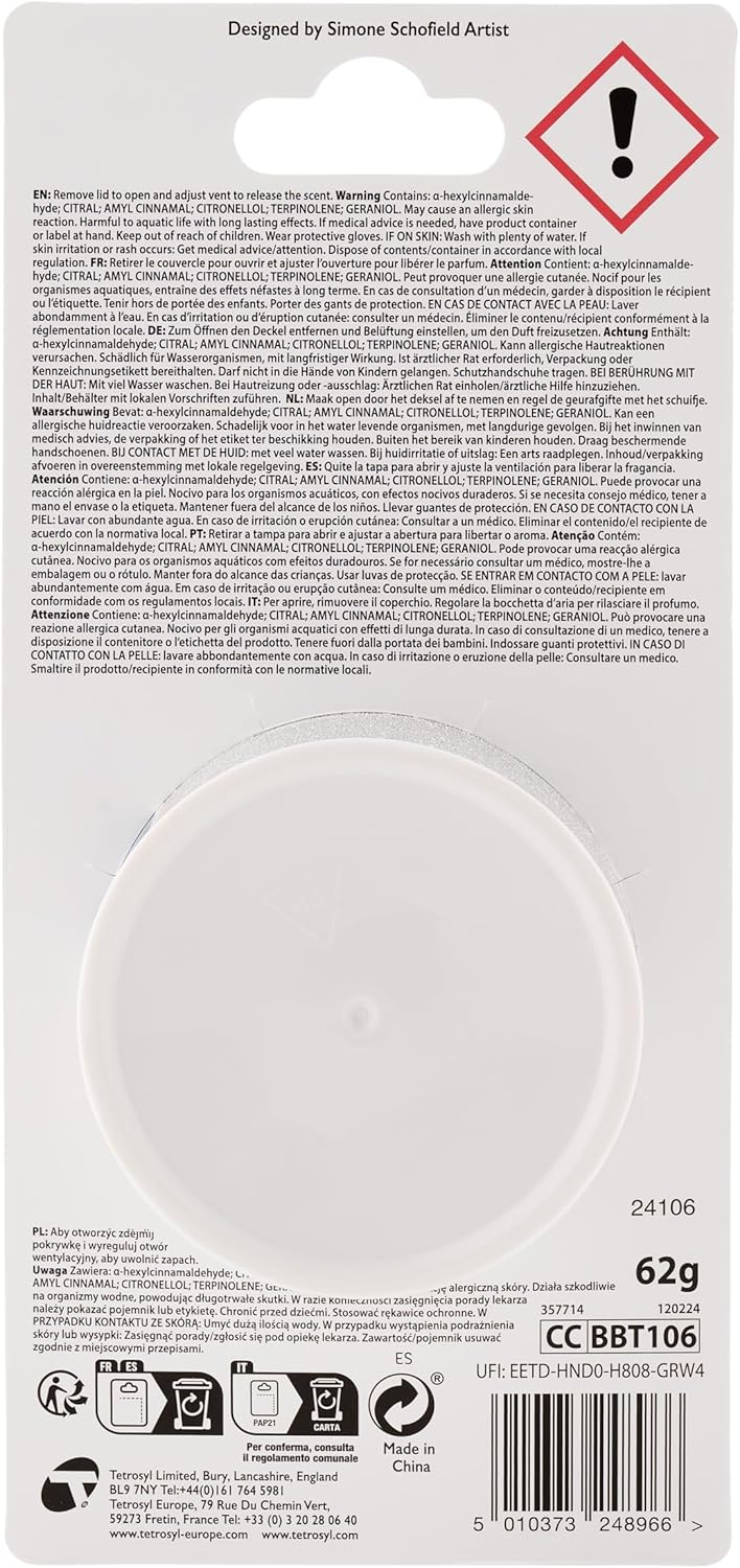Amestec parfumat pe bază de compuși aromatici, suport absorbant, carcasă din plastic.