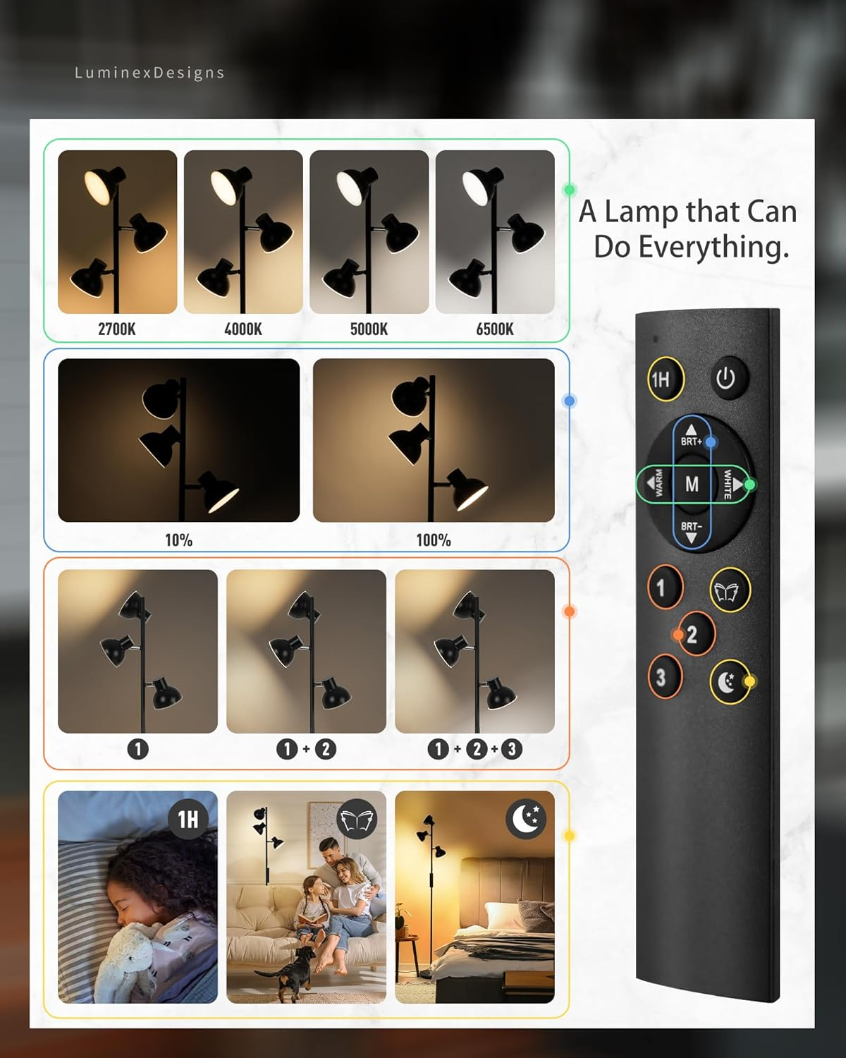 Versatilitatea este punctul forte al acestui model: cele trei capete LED sunt complet reglabile independent, permițându-ți să direcționezi fluxul luminos exact acolo unde ai nevoie – fie că citești o carte pe canapea, lucrezi la birou sau dorești o iluminare ambientală subtilă. Poți personaliza experiența alegând între 4 temperaturi de culoare, de la un alb cald relaxant (2700K) până la un alb rece energizant (6500K), totul cu o reglare continuă a intensității (dimmable).