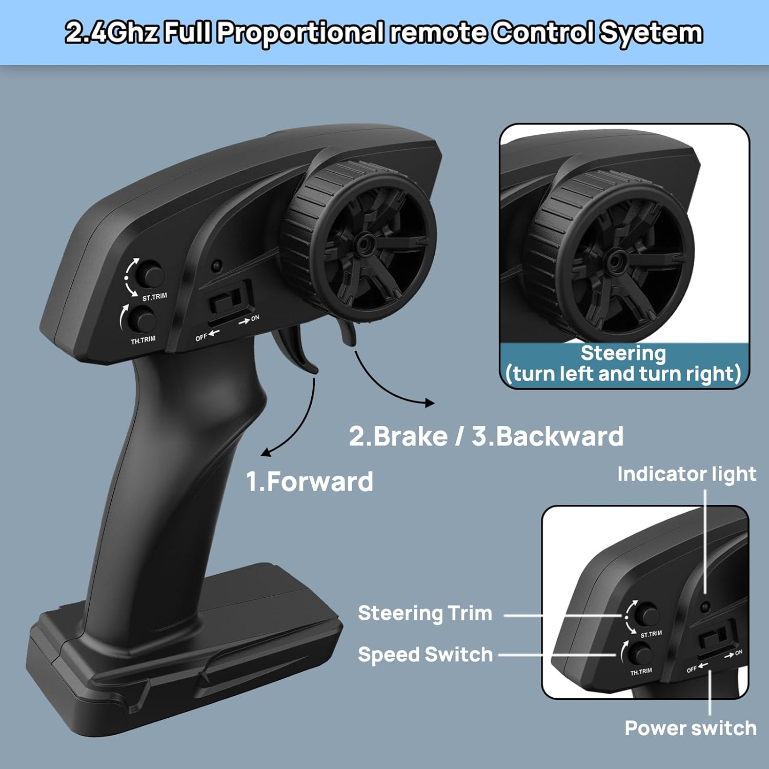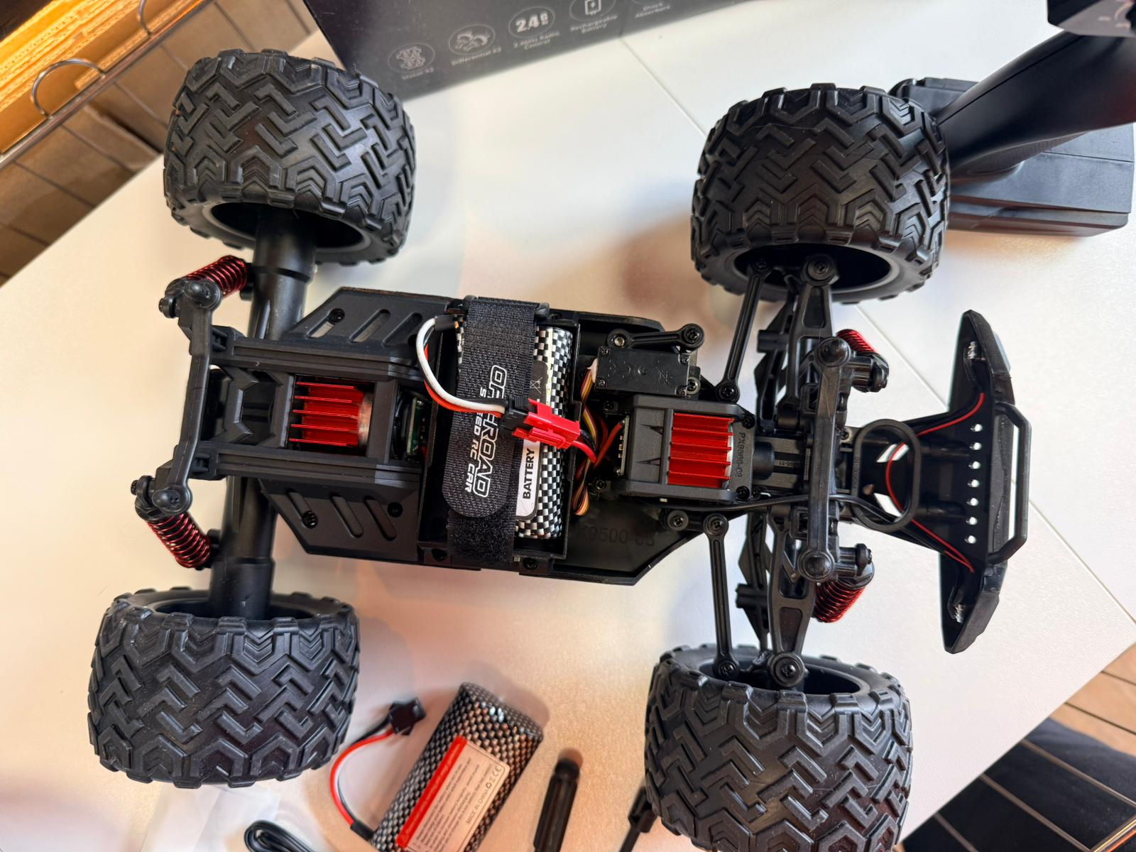 Mașina cu telecomandă BORSTOYPRO este concepută pentru rulare off-road. Folosește tracțiune 4x4 și suspensii independente pentru stabilitate pe teren denivelat. Anvelopele mari din cauciuc oferă aderență bună pe pietriș, iarbă și nisip. Telecomanda funcționează pe frecvență 2.4 GHz și permite control precis fără interferențe. Mașina atinge viteze ridicate și răspunde rapid la comenzi. Caroseria este rezistentă la șocuri și protejează componentele interne. Setul este potrivit pentru joacă în aer liber și utilizare recreativă.