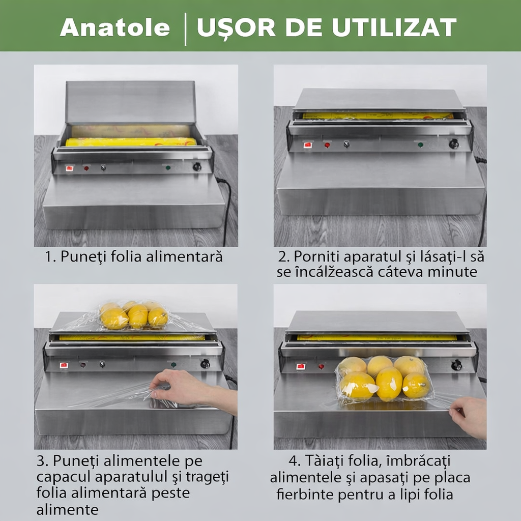 Folie alimentară din plastic cu lățime de până la 450 mm.