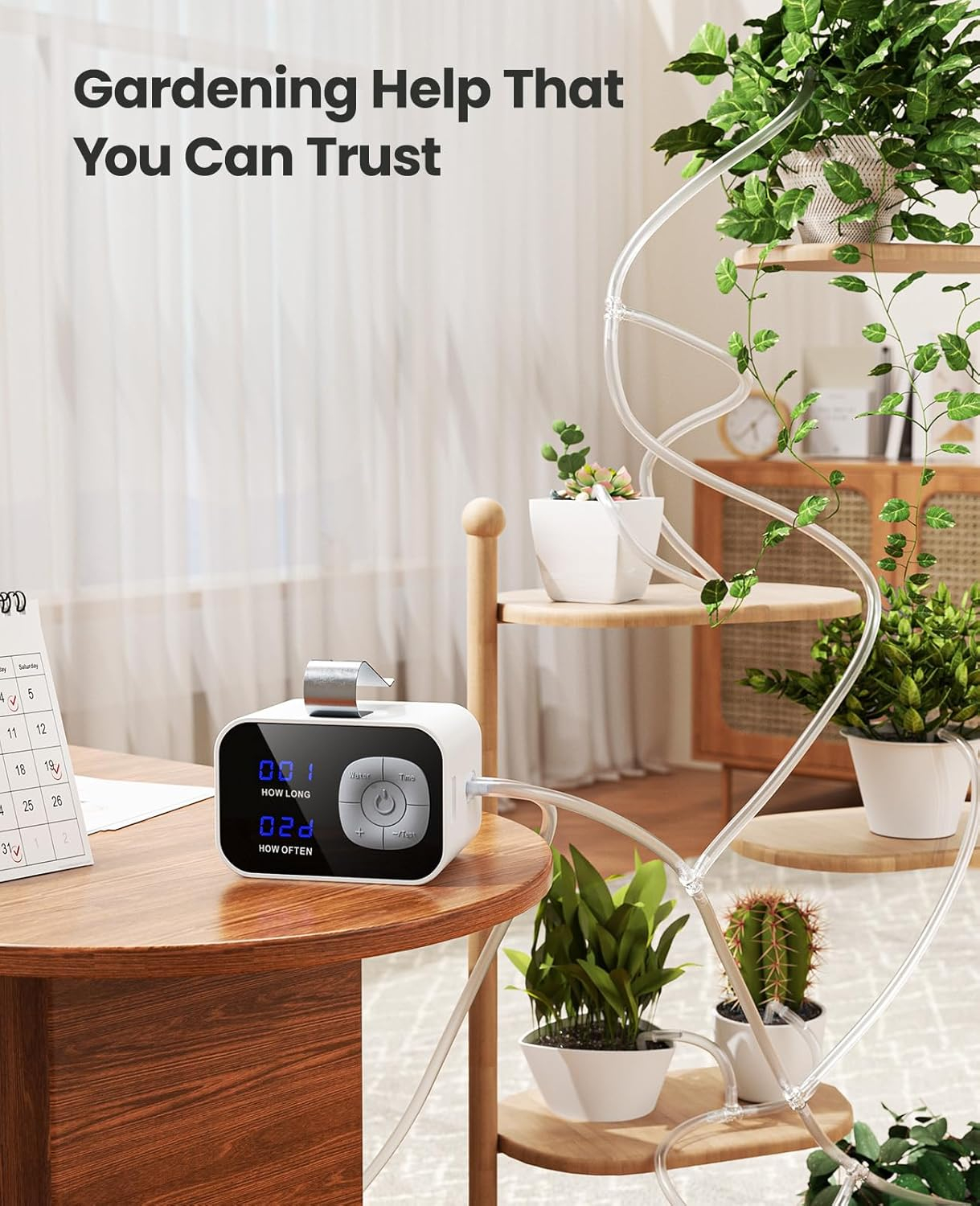 Interfață cu ecran LED: Sistemul automat de udare este echipat cu un ecran LED ușor de utilizat, care simplifică configurarea și programarea. Acest afișaj avansat vă permite să monitorizați cu ușurință durata udării, programele și nivelul bateriei (1-10 reprezintă 10%-100% din capacitatea de încărcare). Concepută pentru o funcționare fără efort, această funcție asigură că îngrijirea plantelor este o sarcină simplă și plăcută.