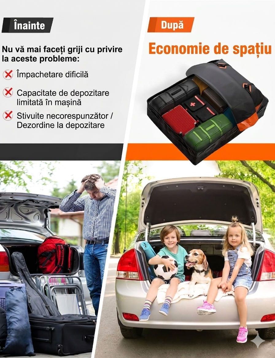 FIVKLEMNZ Portbagaj auto tip geanta impermeabila cu prindere universala – pliabila, cu husa